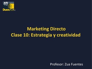 El documento habla sobre estrategia y creatividad en marketing directo. Explica que el marketing directo puede ser táctico u estratégico dependiendo de su importancia dentro de la organización. También describe las ventajas del marketing directo como identificar clientes, fidelizarlos y medir el retorno de la inversión. Finalmente, presenta un caso sobre una marca de cosmética que debe cambiar su estrategia al detectar que su principal mercado objetivo son las mujeres mayores de 45 años.