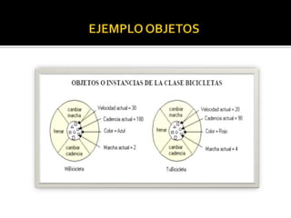 Este documento explica los conceptos básicos de la programación orientada a objetos. Describe que la POO es un paradigma que permite modelar los elementos de un problema como objetos con atributos y métodos. Explica que las clases definen las plantillas para crear objetos y que la herencia y polimorfismo permiten extender y especializar el comportamiento de los objetos.