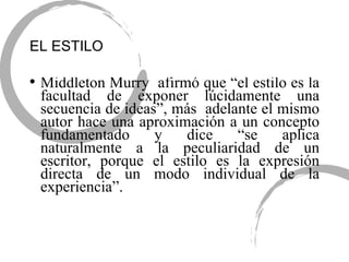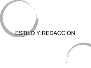 El documento habla sobre el estilo y la redacción periodística. Define el estilo como la forma en que un escritor expresa sus ideas de manera lúcida y como una expresión de su experiencia individual. Luego enumera seis características de un buen estilo: sinceridad, caridad, precisión, sencillez, concisión y originalidad. También discute el estilo periodístico, el papel del editor en revisar los textos y asegurar su calidad, y la importancia de la firma y especificar detalles como cantidades para evitar