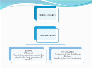 Este documento describe varios métodos y conceptos metodológicos clave. Define método como un modelo o pauta para acercarse a la realidad de manera ordenada. Explica los métodos analítico, sintético, inductivo y deductivo, así como conceptos como definición, clasificación y división. Resalta que el análisis y la síntesis son complementarios y se utilizan en investigación científica.