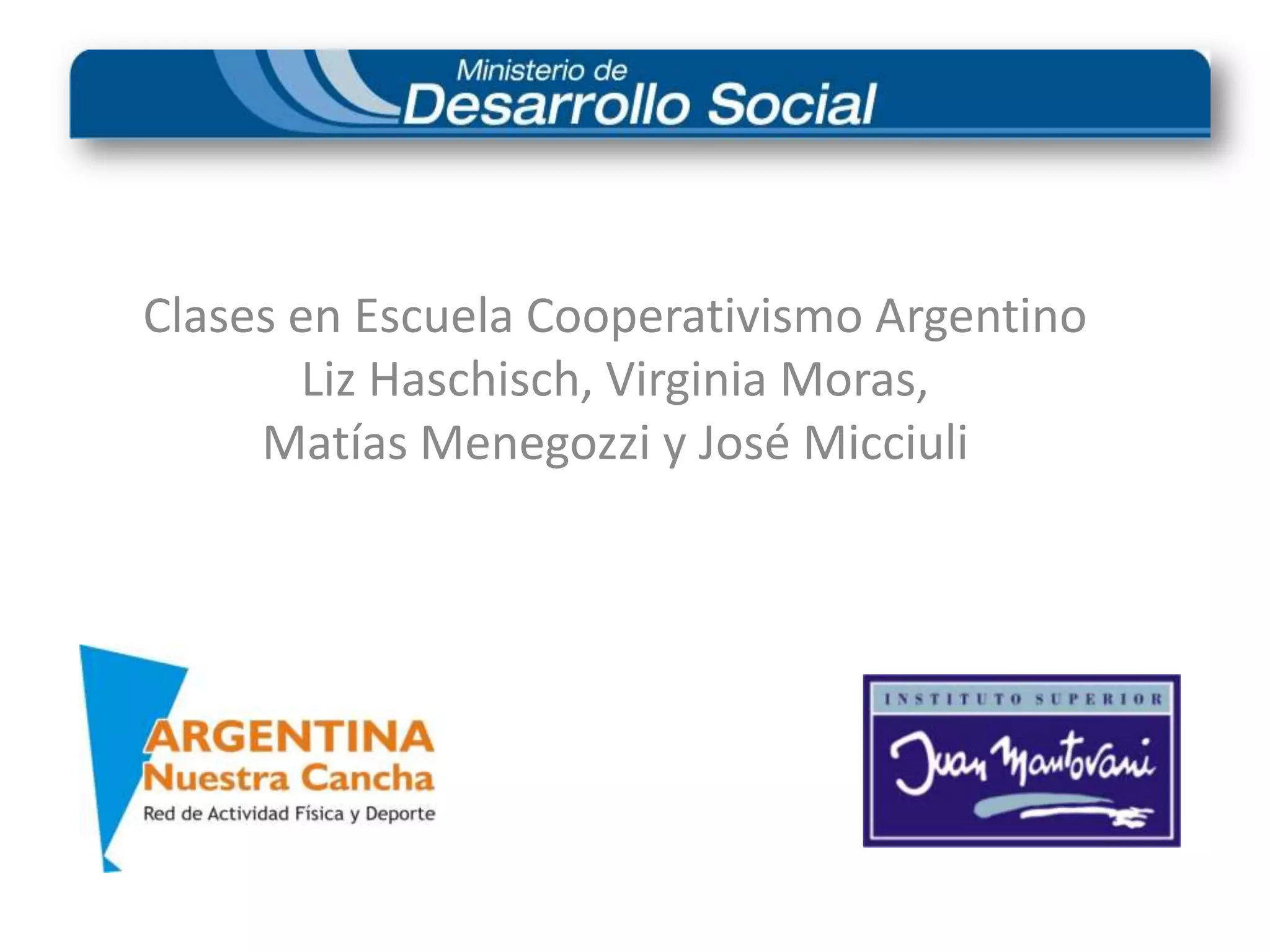 Las clases en la Escuela Cooperativismo Argentino son impartidas por cuatro profesores: Liz Haschisch, Virginia Moras, Matías Menegozzi y José Micciuli.