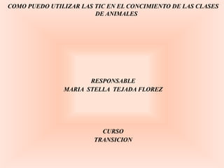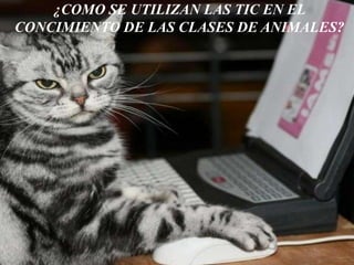 Este documento presenta un plan para enseñar a los estudiantes sobre las clases de animales utilizando TIC. El plan incluye cuatro actividades que utilizan recursos digitales como páginas web, YouTube y Google para mostrar imágenes de animales domésticos y salvajes y sus características. Las actividades también incluyen discusiones y tareas de colorear para evaluar el aprendizaje de los estudiantes sobre las clases de animales.