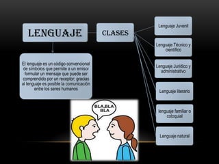 El documento describe los diferentes tipos de lenguaje, incluyendo el lenguaje juvenil, familiar, natural, literario, técnico-científico, jurídico-administrativo. Cada lenguaje se caracteriza por su propósito, características lingüísticas y ámbito de uso.