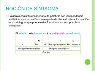 Este documento describe las clases de palabras y sus propiedades morfológicas y sintácticas. Explica que las palabras se clasifican en invariables y variables según sus propiedades morfológicas, y según sus funciones sintácticas. También define el sintagma y describe las propiedades del sustantivo y del verbo, incluyendo su morfología, semántica y funciones.