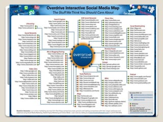 Las redes sociales permiten la interacción social entre grupos de personas a través de plataformas interactivas impulsadas por la comunidad. Los community managers usan herramientas como Twitter, blogs y noticias para monitorear conversaciones, medir métricas como interacciones e impacto, y administrar la presencia de una marca en redes sociales.
