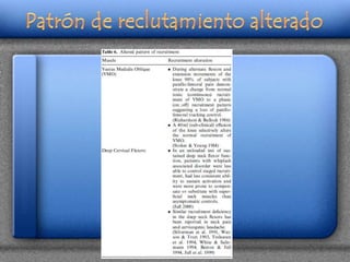 Este documento describe líneas de evaluación y tratamiento basadas en la integración neuromecánica de los músculos. Explica que los músculos pueden clasificarse como estabilizadores, movilizadores o tónicos/fásicos, y describe sus funciones y propiedades mecánicas. También cubre temas como la evaluación y tratamiento funcional de los diferentes tipos de músculos.