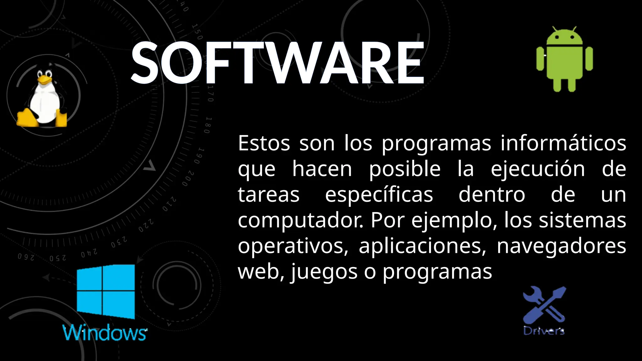 El documento describe diferentes tipos de software, incluyendo software de sistema, software de programación y software de aplicación. Los software de sistema permiten al usuario interactuar con el hardware del computador, mientras que los software de programación son herramientas para desarrolladores. Por otro lado, los software de aplicación están diseñados para llevar a cabo tareas específicas, como videojuegos o reproductores multimedia.