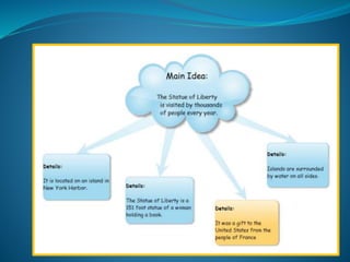 El documento habla sobre la última clase de lectura. En las clases anteriores, los estudiantes aprendieron sobre skimming y context clues. Ahora, vinculando la técnica de skimming, la clase repasará cómo identificar la idea principal de un texto, que es la idea más importante sobre lo que trata el texto.