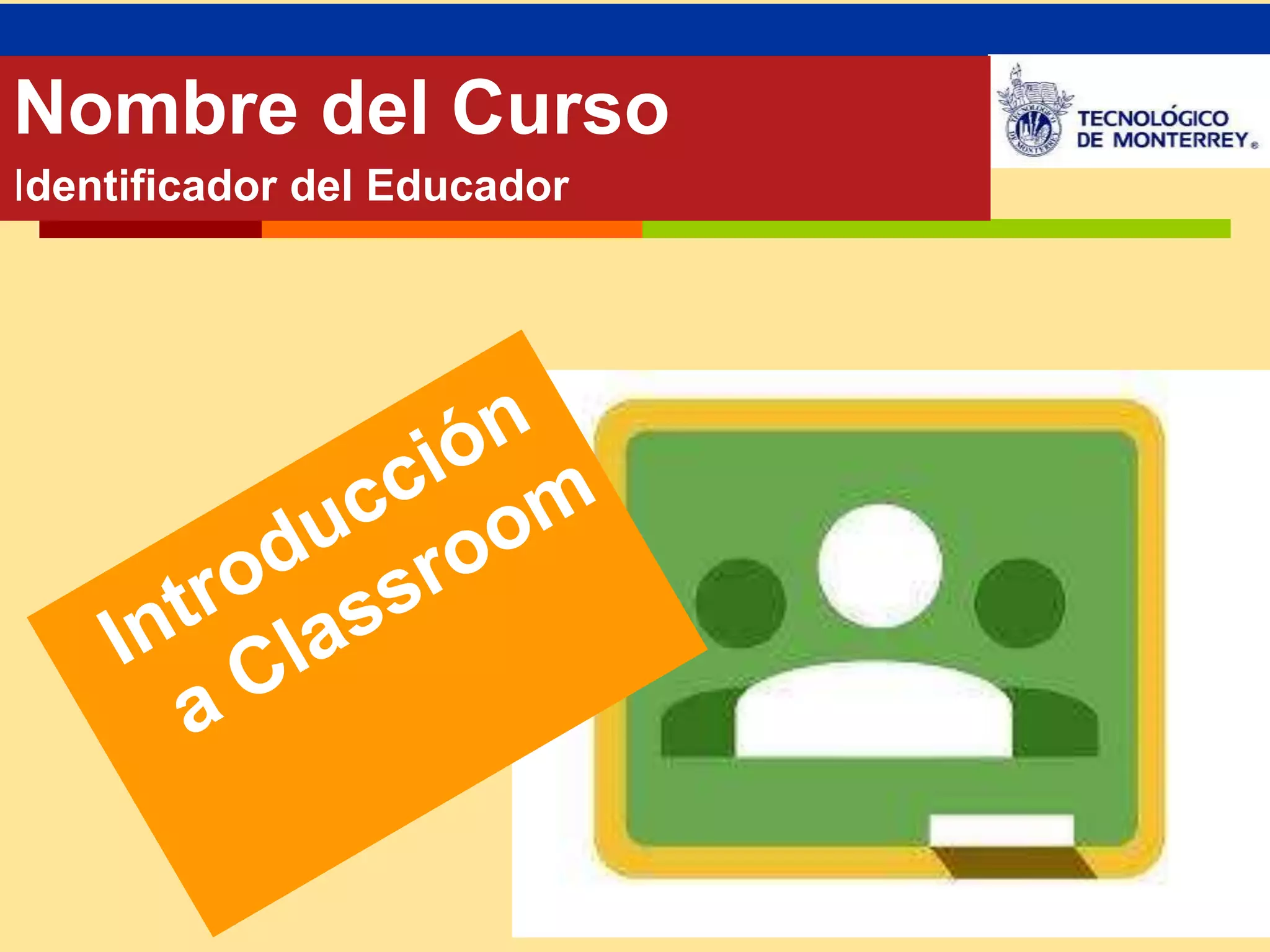 Este documento presenta el contenido de un curso sobre Google Classroom dirigido a maestros. El curso está dividido en tres módulos que cubren la introducción y uso básico de Google Classroom, cómo crear clases y asignar tareas, y cómo gestionar información, interactuar con estudiantes y realizar evaluaciones. Cada módulo incluye actividades, foros de discusión y materiales para familiarizar a los maestros con las funciones de Google Classroom.