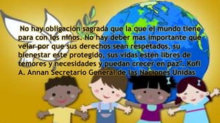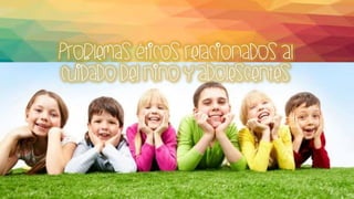 El documento discute los principios éticos que deben guiar la atención de enfermería a niños. Enfatiza la importancia de respetar los derechos de los niños y proteger su bienestar. También explora conceptos como el consentimiento informado, la confidencialidad y los desafíos éticos relacionados con el tratamiento de trastornos alimenticios en menores. La enfermera debe brindar atención compasiva centrada en el niño basada en principios como la beneficencia, la no maleficencia y la justicia.