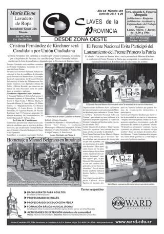 El documento resume las noticias políticas más recientes en Argentina. Cristina Fernández anunció que será candidata a senadora por Unidad Ciudadana. También se anunciaron las listas de candidatos a diputados de Unidad Ciudadana y de Cambiemos para las próximas elecciones. Además, se informa sobre la creación de un nuevo frente político llamado "Primero la Patria" que apoyará la candidatura de Cristina Fernández.