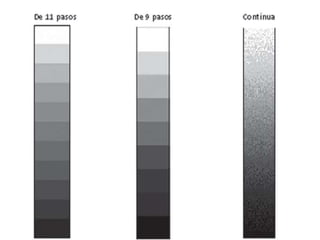 El documento habla sobre las claves tonales, que proponen seis relaciones entre los acromáticos. Cada clave está constituida por tres acromáticos y se clasifican según dos variables: mayores (máximo contraste lumínico y un gris) y menores (mínimo contraste compuesto por grises y un blanco o negro). Las claves incluyen máximo contraste con alta, intermedia o baja luminosidad, y mínimo contraste con alta, intermedia o baja luminosidad.