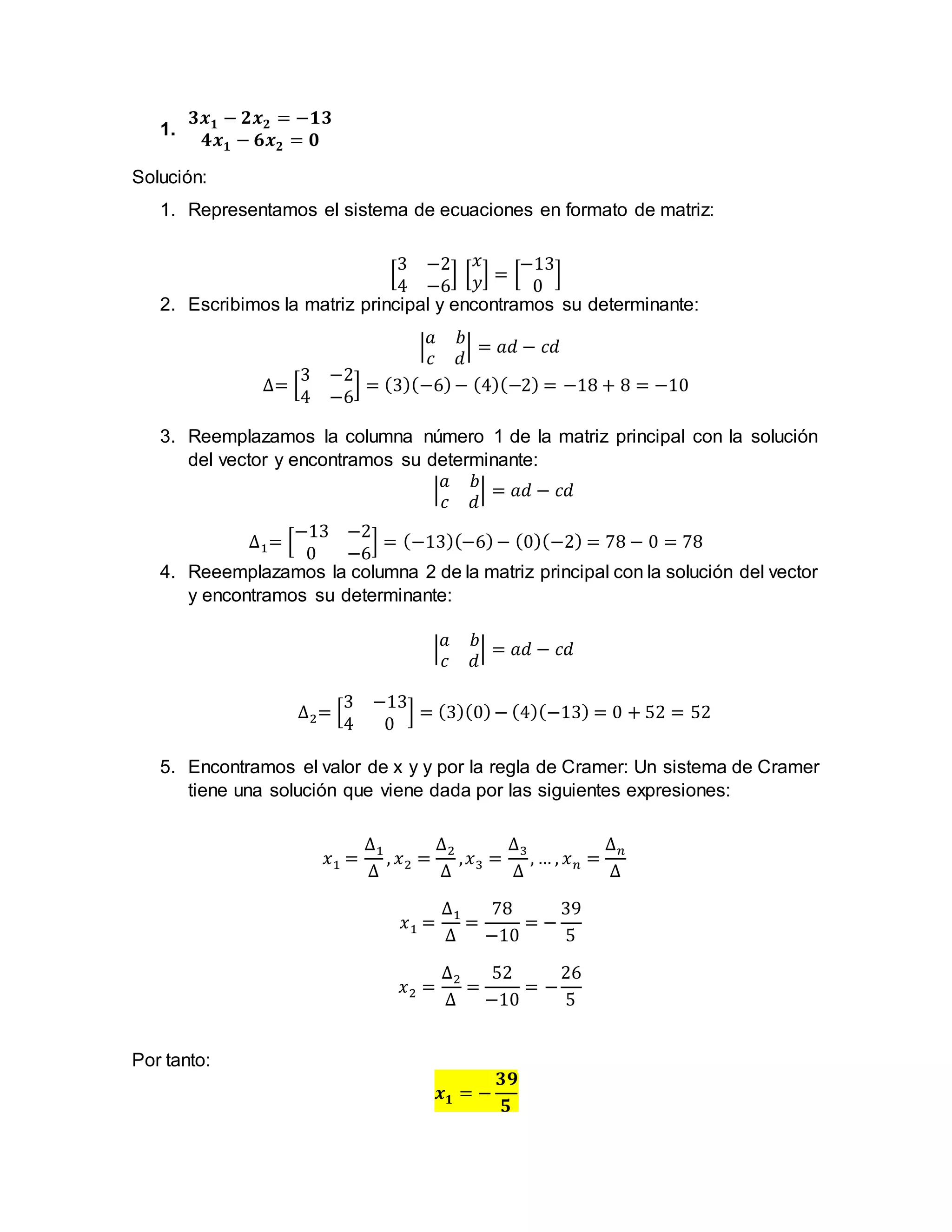 5. Encontramos el valor de x y y por la regla de Cramer: Un sistema de Cramer