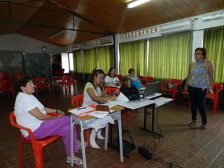 El documento describe una actividad de socialización para docentes y padres de familia en el CIDEP. La actividad incluye ver la película Buscando a Nemo, luego un juego de roles donde los participantes representan roles familiares, y finalmente una conversación entre una familia ficticia y los niños.
