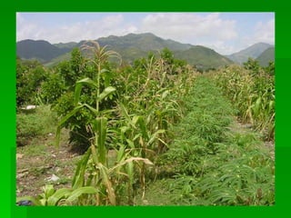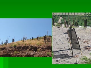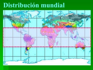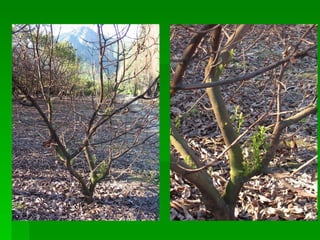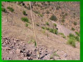 El documento describe las características climáticas y requerimientos de suelo de los frutales de hoja persistente en Chile. El clima es mediterráneo con cuatro estaciones marcadas, lluvias invernales y riesgo de heladas. La temperatura afecta procesos como crecimiento, polinización y maduración de frutos. Los frutales son sensibles a heladas invernales. El suelo debe tener buen drenaje, textura arenosa y baja salinidad.