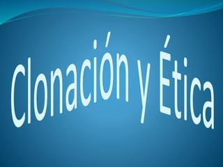 El documento define la clonación y explica que se han clonado ovejas, ratones, vacas, cabras y cerdos. Describe tres tipos de clonación humana (andropática, reproductiva e hidroplasmótica) y sus definiciones. También discute los objetivos, consecuencias positivas y negativas de la clonación, así como las leyes de clonación en España y Andalucía. Finalmente, analiza si la clonación agrede la dignidad del embrión humano desde perspectivas filosófica y bíblica.