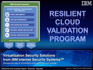 El documento presenta una visión general de las ofertas de IBM en el ámbito del cloud computing, destacando la eficiencia y flexibilidad que brinda a las empresas. Se mencionan diversas soluciones cloud, incluyendo privadas y públicas, y se analizan las barreras a la adopción, como la seguridad y el control. Además, se comparten casos de éxito que demuestran ahorros significativos y mejoras en la eficiencia operativa.