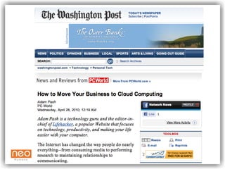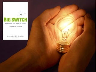 El documento argumenta que no podemos resolver los problemas actuales usando el mismo pensamiento que los creó. Brevemente describe la historia y beneficios del cloud computing desde 2007 a 2010, incluyendo ahorros de costos, mayor velocidad e innovación, y la habilidad de acceder a la información desde cualquier dispositivo a través del navegador.