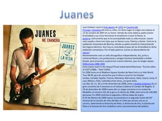 Juan Esteban nació en Colombia en 1972. Se crio en Carolina del Príncipe, donde se erigió una estatua en su honor en 2007. Aprendió a tocar la flauta y la guitarra de niño. Actualmente está casado y tiene tres hijos. Recientemente creó un sello discográfico independiente para apoyar nuevos talentos.