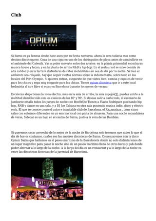 Barcelona se destaca como un destino discotequero con una variedad de clubes nocturnos como Opium y Razzmatazz, ofreciendo diferentes géneros musicales y un ambiente vibrante. La zona del Paseo Marítimo de la Barceloneta y El Eixample son puntos clave para disfrutar de la vida nocturna, mientras que la tarjeta Barcelona Nightcard proporciona acceso a diversos locales. Los clubes varían desde los más elegantes hasta los más underground, atrayendo tanto a locales como a turistas.