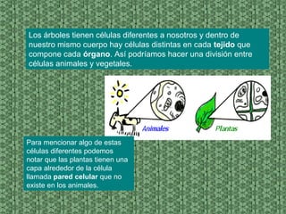 El documento describe las diferentes clasificaciones de células. Las células se pueden clasificar como células vegetales o animales, dependiendo de si tienen o no pared celular. También se pueden clasificar por tamaño, forma, cantidad de organelas y función. Otra clasificación es si son autótrofas u heterótrofas, dependiendo de si pueden fabricar su propio alimento a través de la fotosíntesis o si necesitan obtenerlo de otros organismos.