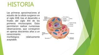 El documento describe la historia, estructura y funciones de la célula vegetal. Explica que las primeras observaciones de células se realizaron en el siglo XVII tras el desarrollo del microscopio. A lo largo de los siglos XVII-XIX, científicos como Hooke, Schwann y Virchow hicieron importantes descubrimientos sobre la célula. La célula vegetal se caracteriza por tener pared celular, cloroplastos y llevar a cabo la fotosíntesis. Presenta varios tipos de tejidos