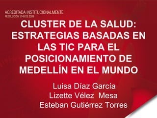 Este documento presenta un proyecto de investigación que busca proponer estrategias de marketing para el clúster de la salud de Medellín basadas en TIC. La pregunta de investigación es si el clúster posee una deficiente utilización de estas estrategias. Los objetivos son identificar el uso actual de TIC, comparar con Monterrey, analizar las estrategias usadas y proponer acciones. Se justifica por la importancia del sector salud. Se revisarán documentos, entrevistas y encuestas para analizar datos e información primaria y secund