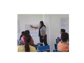 El documento proporciona instrucciones para crear una galería de fotos de un profesor y sus cinco estudiantes, recomendando colocar primero la foto del profesor y luego las de los estudiantes de forma ordenada, y sugiriendo usar formato jpg para que el archivo no pese demasiado.