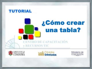 Este documento describe cómo utilizar tablas en Microsoft Word para organizar información en filas y columnas y mejorar el diseño de documentos. Explica que las tablas se pueden crear usando el cuadriculado, la herramienta Insertar Tabla o Dibujar Tabla. También describe cómo modificar el estilo de las tablas aplicando formatos preestablecidos o dibujando nuevos bordes, e insertar o eliminar filas y columnas haciendo clic con el botón derecho del mouse.