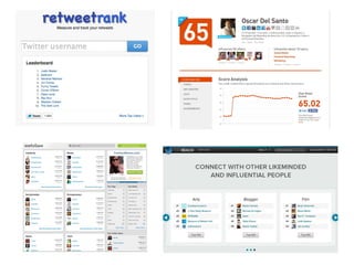 Este documento ofrece recomendaciones para usar Twitter de manera efectiva, incluyendo compartir tu ID en tus canales, enfocarte en temas que te apasionan, definir tu propia marca, investigar hashtags y palabras clave, seguir a otros usuarios estratégicamente, crear mensajes originales dirigidos a tu audiencia, y utilizar herramientas que ayudan a administrar tu cuenta. También analiza el rol de usuarios en diferentes regiones y sugiere integrar otras redes sociales.