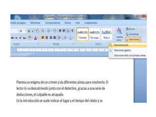 Este documento proporciona instrucciones sobre cómo utilizar Microsoft Word para insertar una portada y cambiar el formato del texto. Explica cómo agregar una portada personalizada e insertar el título, nombre del autor y otros detalles. Luego describe cómo seleccionar texto, cambiar el tipo y tamaño de letra, y modificar la alineación, sangría y espaciado del párrafo para aplicar formato al texto.