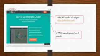 El documento es una guía sobre cómo utilizar Piktochart, que incluye pasos como acceder a la página web, crear un usuario, elegir un formato y plantilla, y personalizar el diseño con formas, figuras e imágenes. También sugiere aplicaciones prácticas de la herramienta, como diseñar campañas para celebraciones y eventos. Se finaliza con un agradecimiento por el tiempo dedicado a leer la guía.