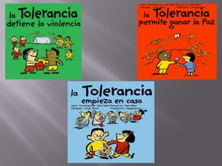 El documento presenta diferentes perspectivas sobre la tolerancia. En primer lugar, cita a Confucio describiendo una sociedad ideal de tolerancia universal donde todos viven en paz y armonía. Luego discute cuando se debe ejercer la tolerancia, señalando que es apropiado permitir males menores para evitar mayores o permitir un bien mayor. Finalmente, incluye varias citas de figuras históricas enfatizando la importancia de la tolerancia y el respeto mutuo a pesar de las diferencias.