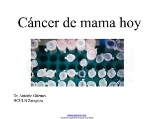 El documento trata sobre el cáncer de mama. Aborda temas como la epidemiología, factores de riesgo, avances en detección, clasificación, cirugía, tratamientos quimioterápicos y biológicos, y nuevas dianas terapéuticas. También discute conceptos como mastectomía profiláctica y tendencias en el manejo de la axila.