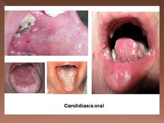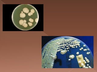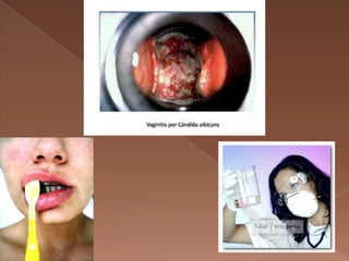 Candida albicans es un hongo comensal que puede causar infecciones como candidiasis. Se analiza mediante observación microscópica de muestras y cultivo en medios selectivos, mostrando levaduras ovaladas de 3-5 micras. Es sensible a antifúngicos como fluconazol.