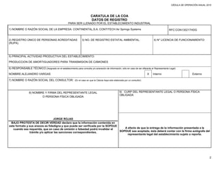 Este documento proporciona información sobre la operación de una planta industrial. Incluye detalles sobre los insumos, productos, emisiones y residuos generados por la planta. También describe el consumo energético y proporciona diagramas de flujo del proceso productivo. El objetivo es recopilar datos sobre las emisiones y transferencias de sustancias de la planta para su inclusión en el Registro de Emisiones y Transferencia de Contaminantes.