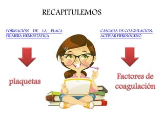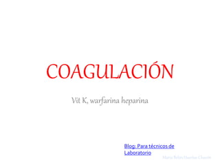 Este documento resume cómo funciona la coagulación sanguínea, con énfasis en el papel de la vitamina K, la warfarina y la heparina. Explica que la vitamina K activa factores de coagulación como el factor 2, 7, 9 y 10 de la vía extrínseca. La warfarina inhibe la activación de la vitamina K, impidiendo que estos factores funcionen. La heparina potencia la antitrombina 3 para inhibir factores de la vía intrínseca como el factor 12, 11, 9 y 10.