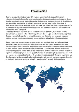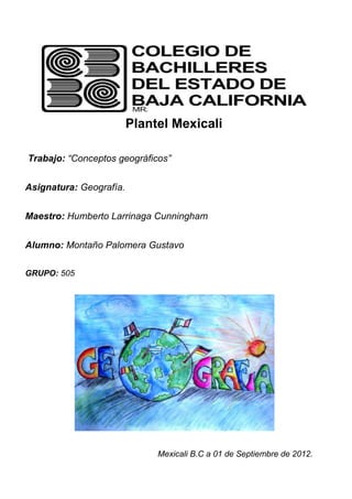 Este documento presenta 3 conceptos clave de la geografía: 1) La geografía estudia la relación entre los seres humanos y su medio ambiente físico. 2) La geografía se divide en geografía física, biológica y humana. 3) La geografía usa métodos científicos como la observación y experimentación para explicar patrones en la Tierra.
