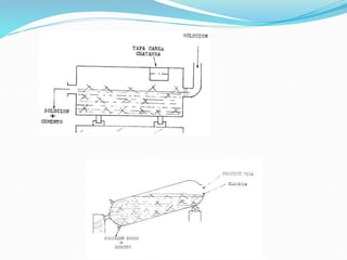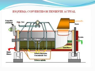 El documento proporciona información sobre las propiedades, usos, minerales, procesos de extracción y refinación del cobre. Describe los principales métodos para procesar minerales de cobre, incluyendo flotación, tostación, fusión, conversión y lixiviación, así como técnicas de purificación como la extracción con disolventes, cementación y electrorefinación.