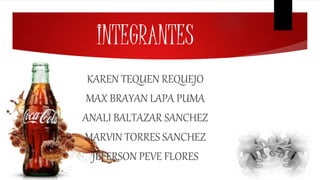 La Coca Cola Company fue fundada en 1876 en Perú. Tiene como visión refrescar al mundo e inspirar momentos de optimismo y felicidad. Su misión se enfoca en personas, bebidas, socios, planeta, beneficio y productividad. Valora el liderazgo, colaboración, integridad, rendir cuentas, pasión, diversidad y calidad. Crea entornos laborales felices para sus empleados a través de su cultura organizacional y valores como ser parte de algo importante, crecer juntos y formar parte de un equipo diverso.