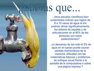 El documento describe los posibles efectos negativos del consumo excesivo de Coca-Cola en la salud. Contiene ácido fosfórico que puede debilitar los huesos y causar osteoporosis, así como cafeína y azúcares que pueden causar problemas como adicción, insomnio, sobrepeso y caries. También advierte que los edulcorantes artificiales en las versiones light pueden causar daños cerebrales y pérdida de memoria. El documento recomienda optar por agua en lugar de Coca-Cola para una