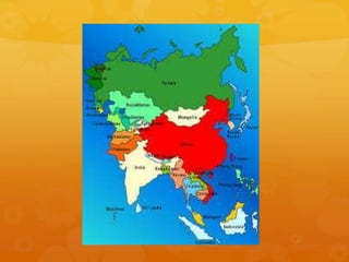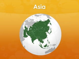 Asia es el continente más grande y poblado de la Tierra. Aunque Asia y Europa se consideran a menudo continentes separados por razones culturales, geográficamente forman una sola masa de tierra llamada Eurasia. La división actual de Asia incluye Rusia, Turquía y Oriente Medio después de la Segunda Guerra Mundial. Asia alberga una gran diversidad de sistemas políticos y económicos como el socialismo, el capitalismo y las tribus indígenas.