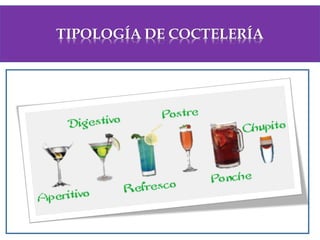 Este documento presenta varias recetas de cócteles, incluyendo el Dry Martini, Margarita, Bloody Mary, Caipirinha y otros. Describe los ingredientes, métodos de preparación y decoraciones de cada cóctel.