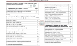 Este documento presenta una guía de codificación para evaluar las respuestas a preguntas de un examen de matemáticas de 6° grado. La guía incluye cuatro problemas con varias preguntas cada uno y un código para cada tipo de respuesta posible, ya sea correcta o incorrecta. Los problemas involucran gráficos de datos, aplicaciones en manteles de crochet, ladrillos para construir muros y áreas. La guía provee una forma estandarizada de evaluar y categorizar las respuestas de los estudiantes.