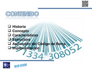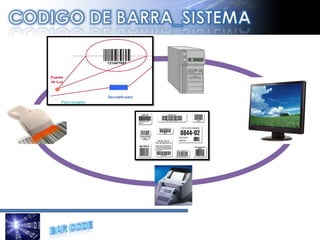 El código de barras fue inventado en 1940 y se utilizó por primera vez en 1974. Es un sistema para codificar información en barras de anchos variables que pueden ser leídas ópticamente por dispositivos y procesadas por computadoras. Se usa ampliamente para identificar productos en el comercio minorista, inventario, envíos y más.