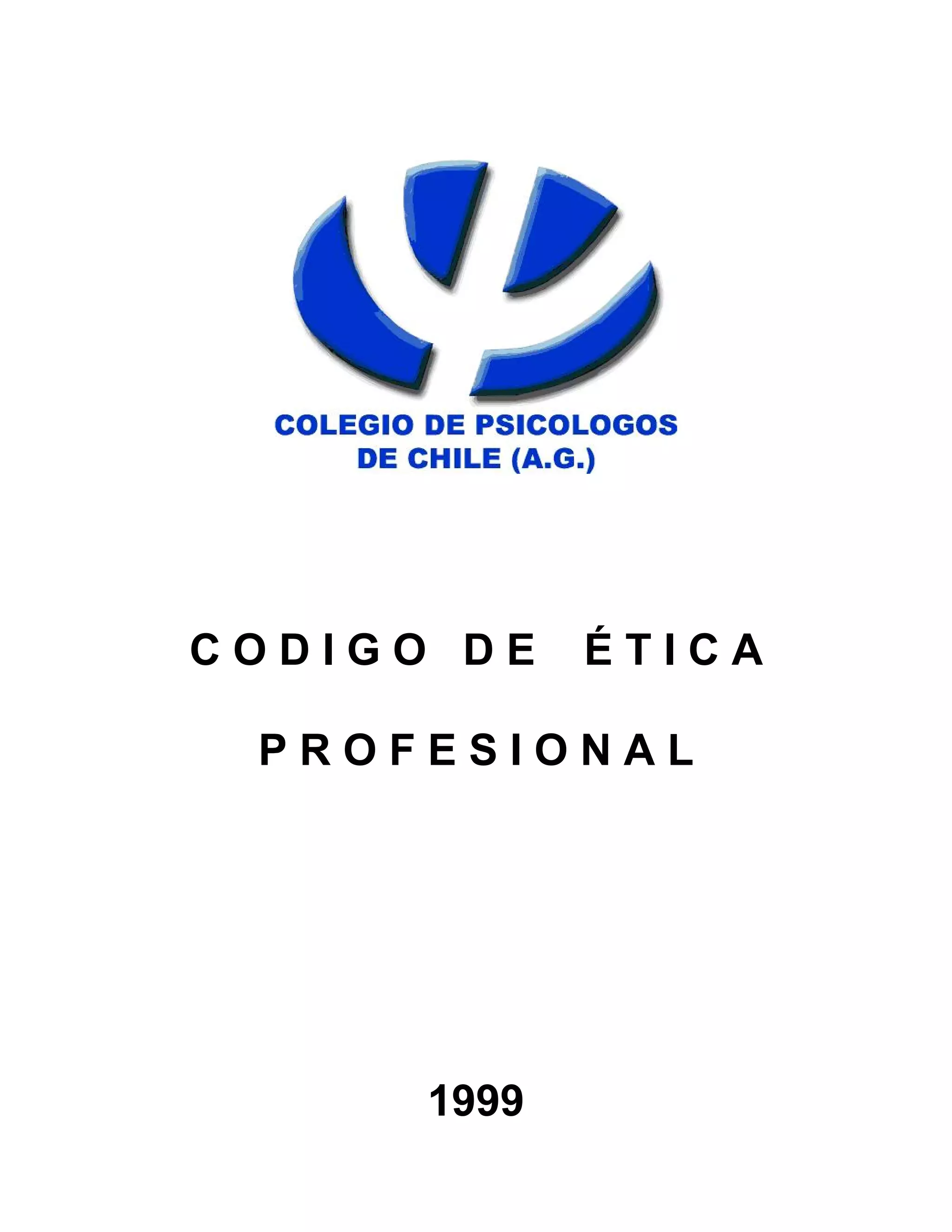 Este documento presenta el Código de Ética Profesional para psicólogos. Establece principios éticos generales como el respeto por los derechos humanos y la dignidad de las personas, la competencia, el compromiso profesional y científico, y la integridad. También incluye normas éticas generales sobre la aplicabilidad del código, los límites de su acción, y el respeto por los demás. Finalmente, detalla normas éticas específicas relacionadas con el cliente, los colegas, la investigación, y las rel