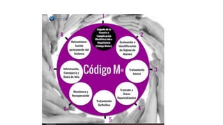 El código mater es un equipo multidisciplinario que atiende emergencias obstétricas con el objetivo de preservar la salud de la madre y el bebé. El equipo evalúa y trata la complicación, estabiliza a la paciente, y la deriva a un área especializada o la mantiene estabilizada hasta poder trasladarla de manera segura. El código mater incluye médicos, enfermeras, trabajadores sociales y otros especialistas que brindan una respuesta rápida e integral a las emergencias maternas.