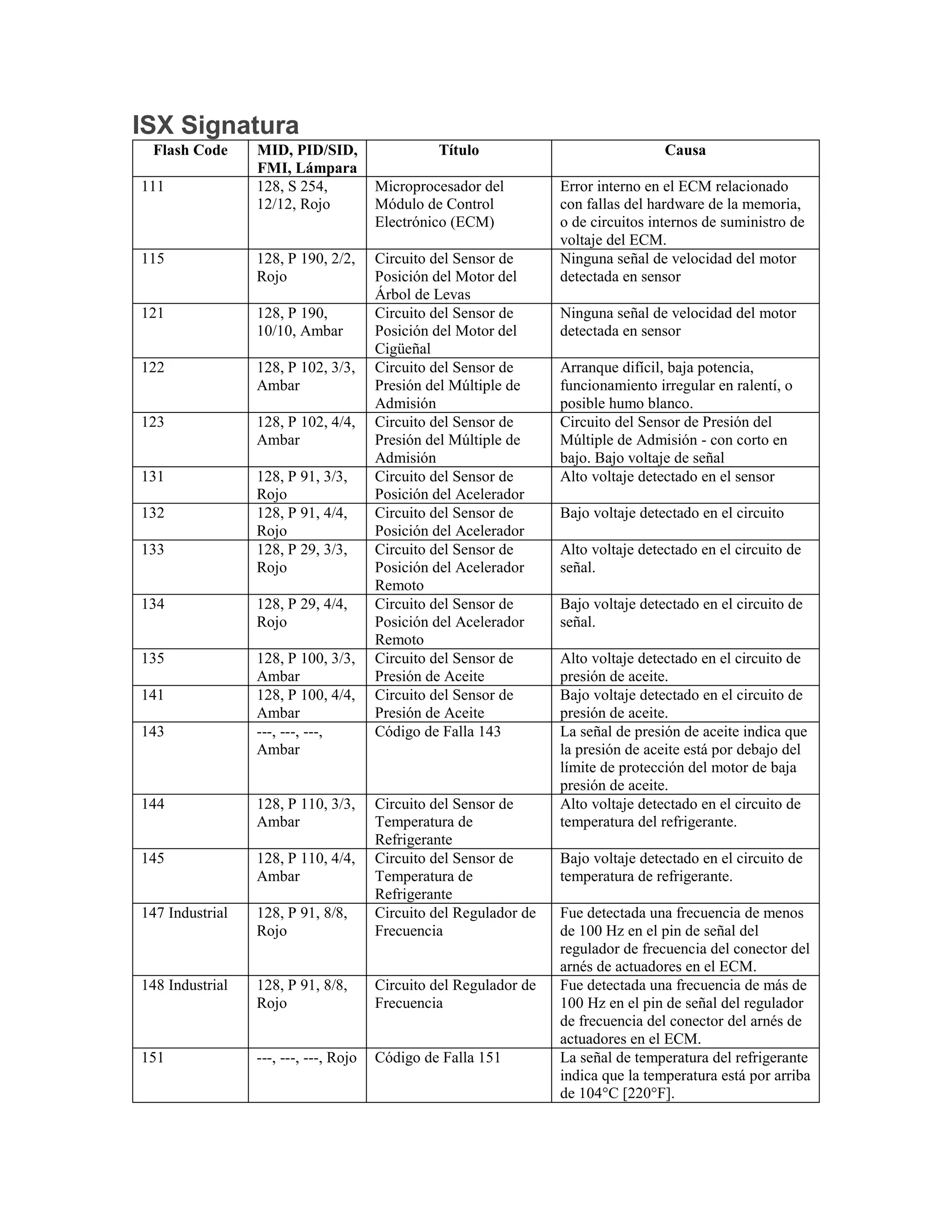 El documento proporciona información sobre códigos de falla detectados por el módulo de control electrónico de un vehículo. Se describen más de 50 códigos de falla diferentes que incluyen fallas en sensores, circuitos eléctricos y otros componentes. Cada código de falla incluye información como el número de código, la ubicación y tipo de falla detectada y posibles causas.