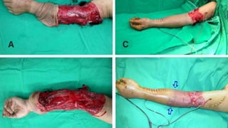 El documento describe el término "codo flotante", que se refiere a una fractura del antebrazo asociada a una fractura del húmero en el mismo lado. Estas lesiones son poco frecuentes y generalmente ocurren después de traumatismos de alta energía. El tratamiento quirúrgico con osteosíntesis interna es el estándar, aunque existen varias opciones de implantes y accesos quirúrgicos dependiendo de la localización y características de las fracturas.