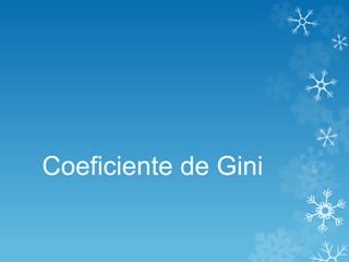 El coeficiente de Gini es una medida de desigualdad en la distribución del ingreso entre individuos de una región, que va de 0 (igualdad total) a 1 (desigualdad total). Fue creado por el estadístico italiano Corrado Gini en 1912 y se utiliza comúnmente para medir la desigualdad en los ingresos dentro de un país.
